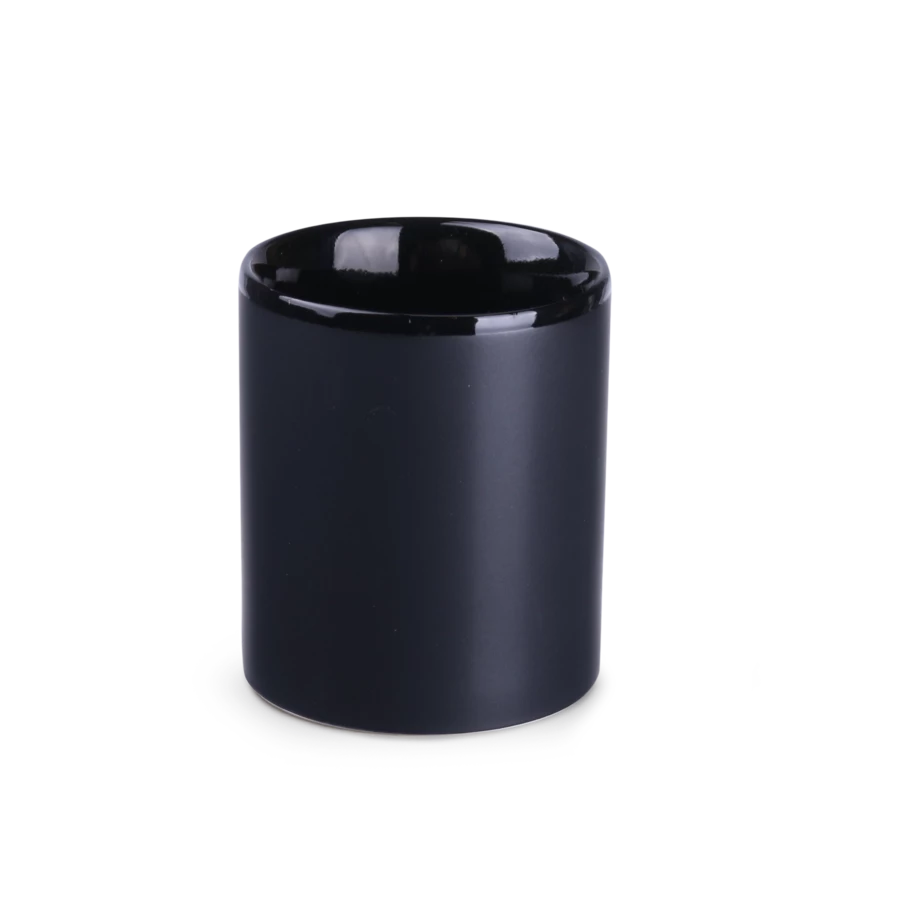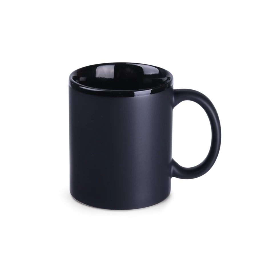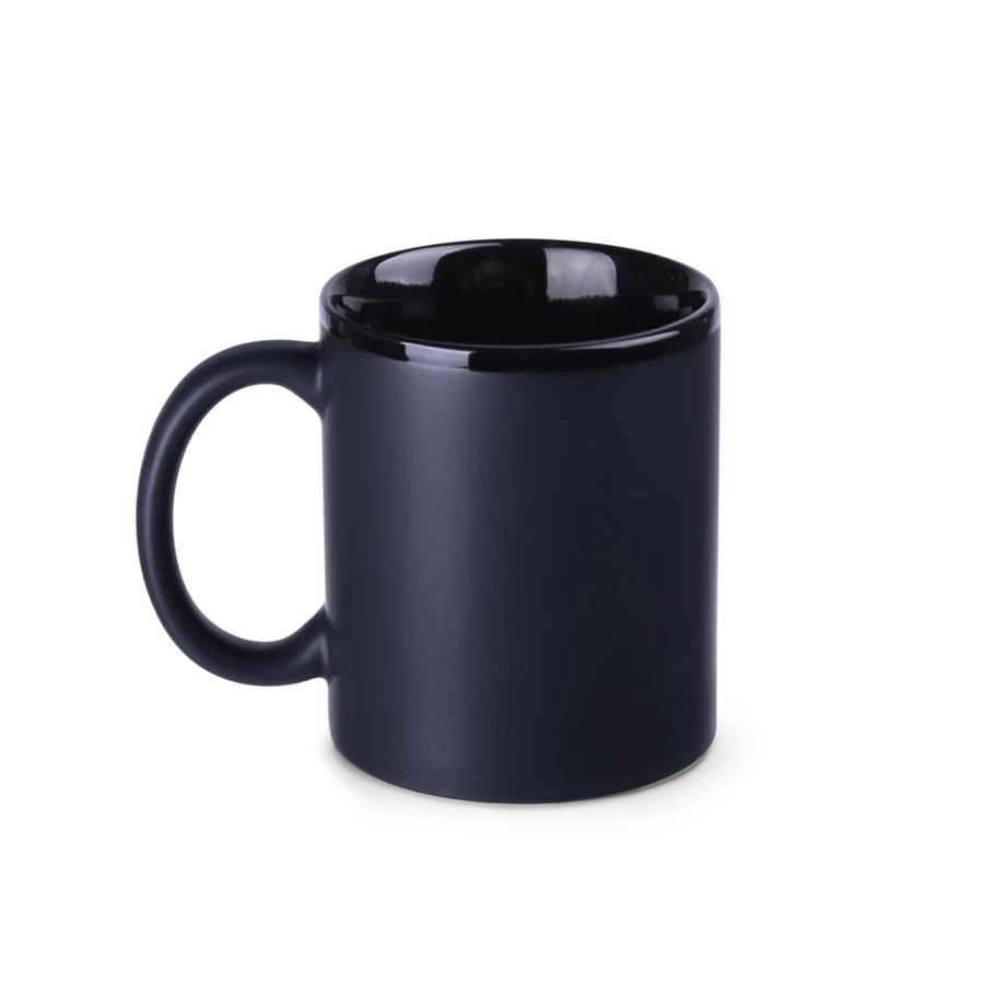 Czarna matowa wersja popularnego modelu o prostych ściankach i cylindrycznym kształcie. Posiada kilka kolorów wnętrza do wyboru oraz kontrastowe wykończenie błyszczącym paskiem, które dodatkowo podkreślą naniesiony na niego wyjątkowy branding.