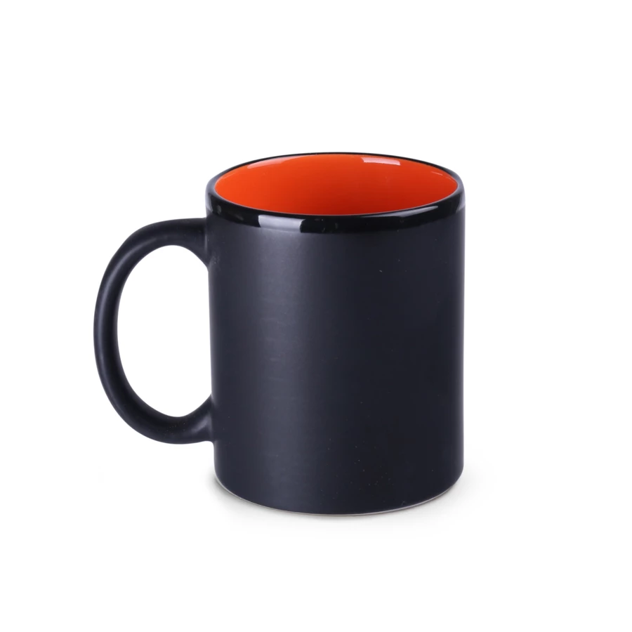 Czarna matowa wersja popularnego modelu o prostych ściankach i cylindrycznym kształcie. Posiada kilka kolorów wnętrza do wyboru oraz kontrastowe wykończenie błyszczącym paskiem, które dodatkowo podkreślą naniesiony na niego wyjątkowy branding.
