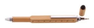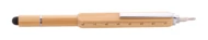 Wielofunkcyjny długopis do ekranów dotykowych. Wykonany z bambusa z przekręcanym mechanizmem. Posiada funkcję wkrętaka, poziomicy i linijkę 7 cm. Z niebieskim wkładem.