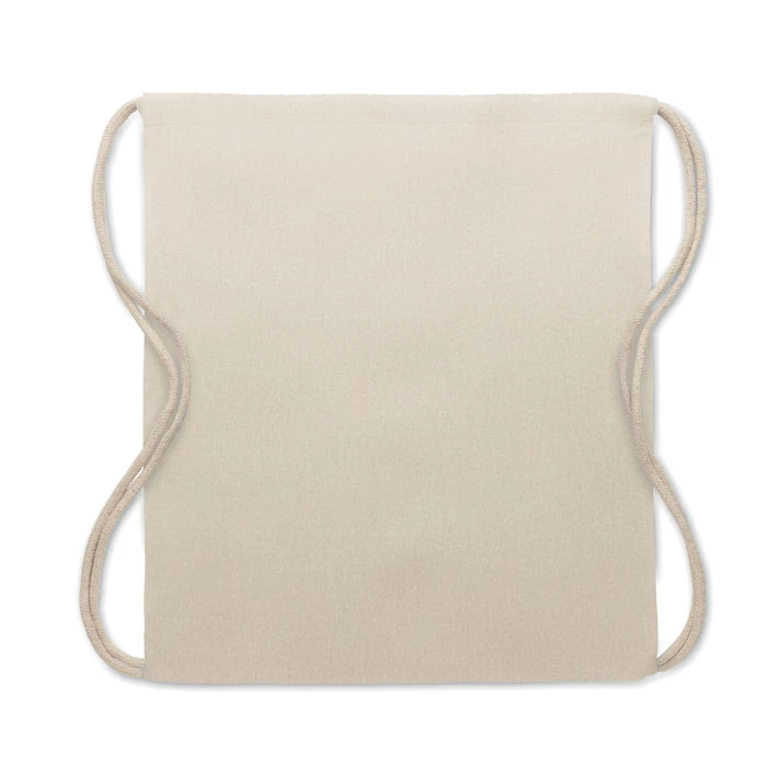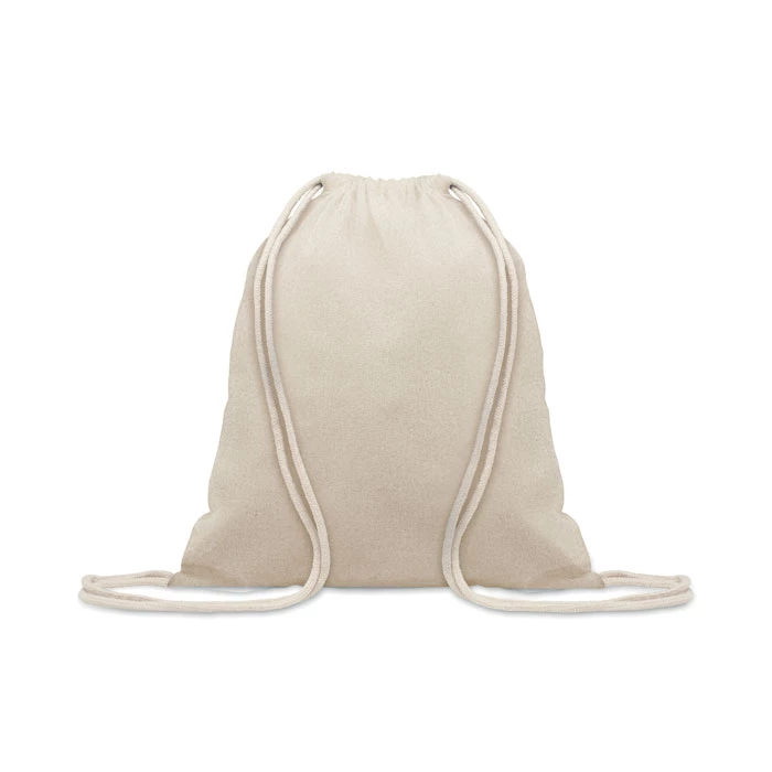 Torba ze sznurkiem z bawełny z recyklingu (80% bawełny z recyklingu, 20% zwykłej bawełny). 140 gr/m².