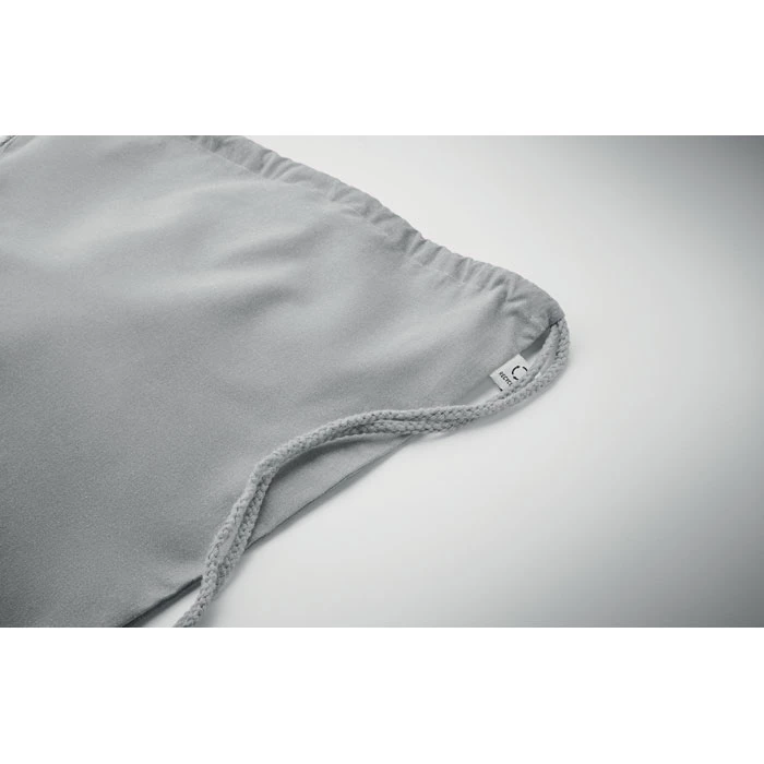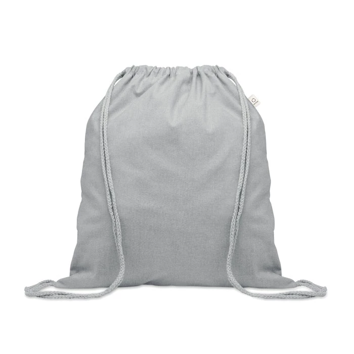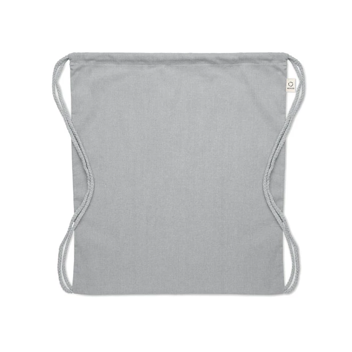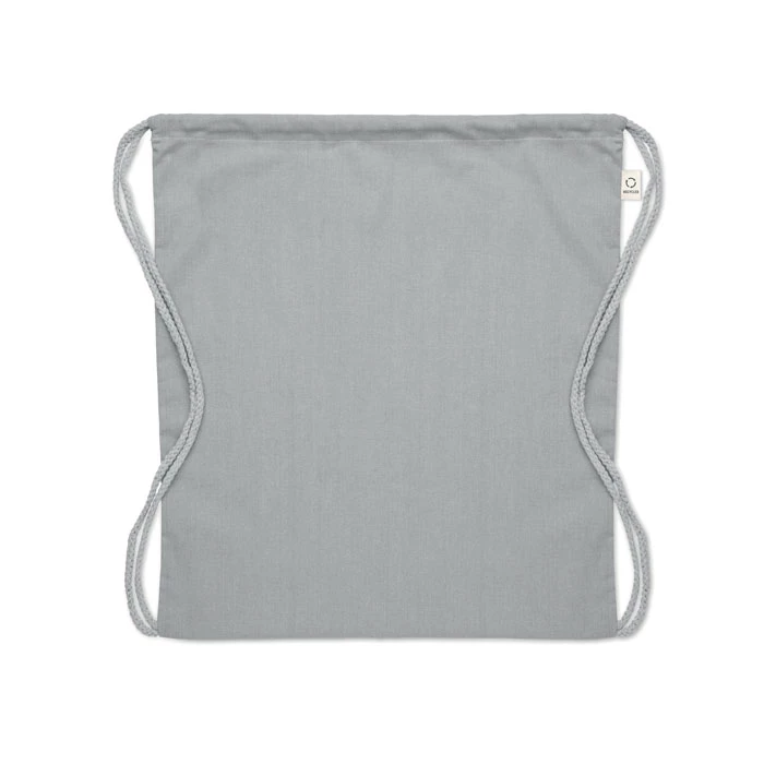 Worek ze sznurkiem wykonany z przetworzonej bawełny (70%) i RPET (30%). 140 gr/m². Ten produkt może się kurczyć po zadrukowaniu.