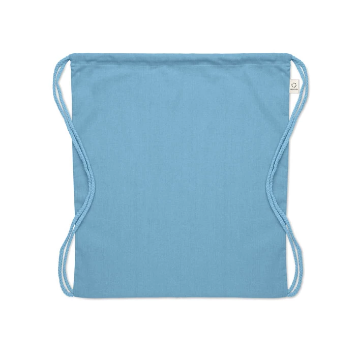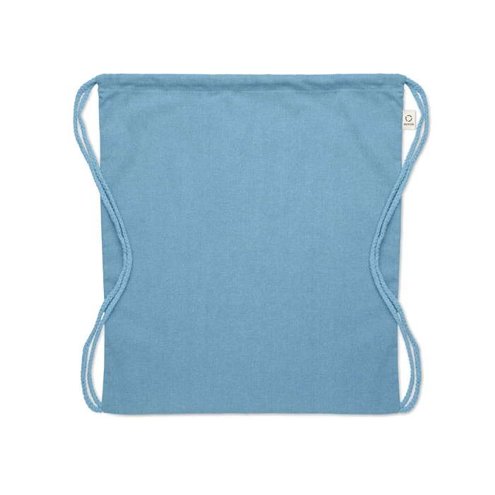 Worek ze sznurkiem wykonany z przetworzonej bawełny (70%) i RPET (30%). 140 gr/m². Ten produkt może się kurczyć po zadrukowaniu.