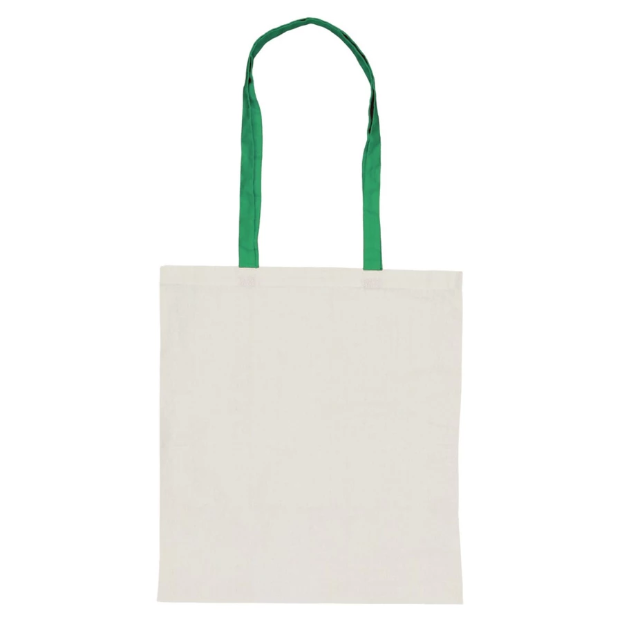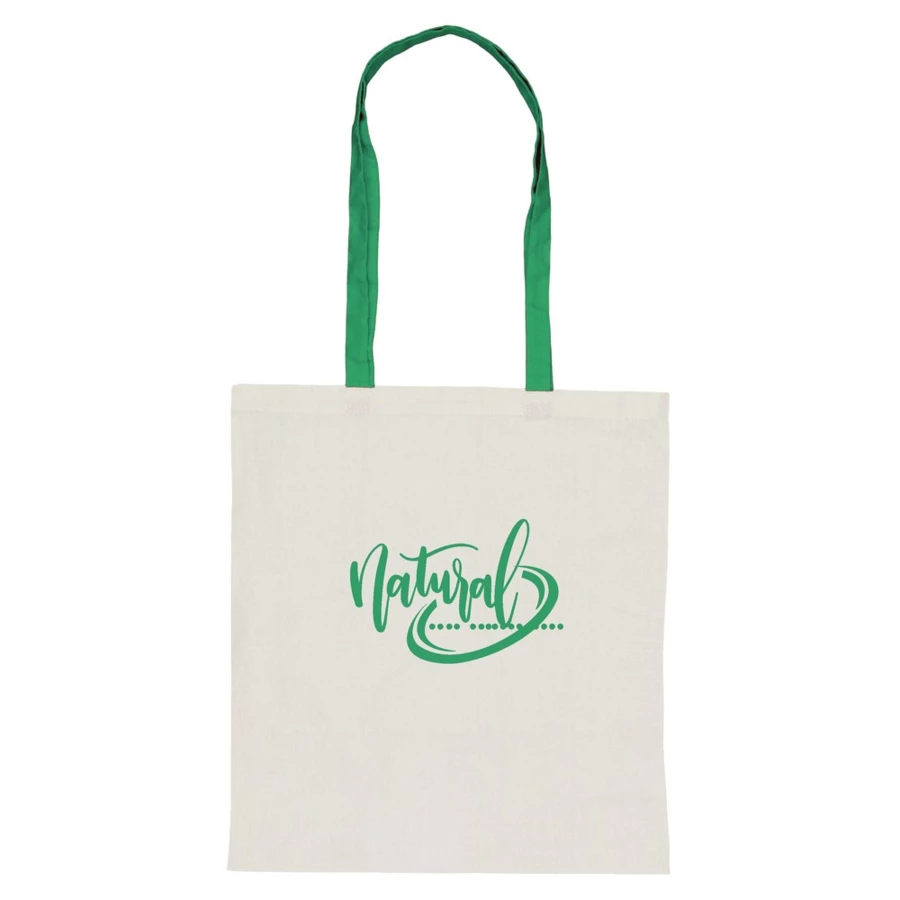 Torba na zakupy, posiada długie uchwyty umożliwiające noszenie na ramieniu, produkt wykonany z bawełny o gramaturze 140 g/m2