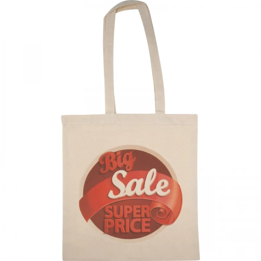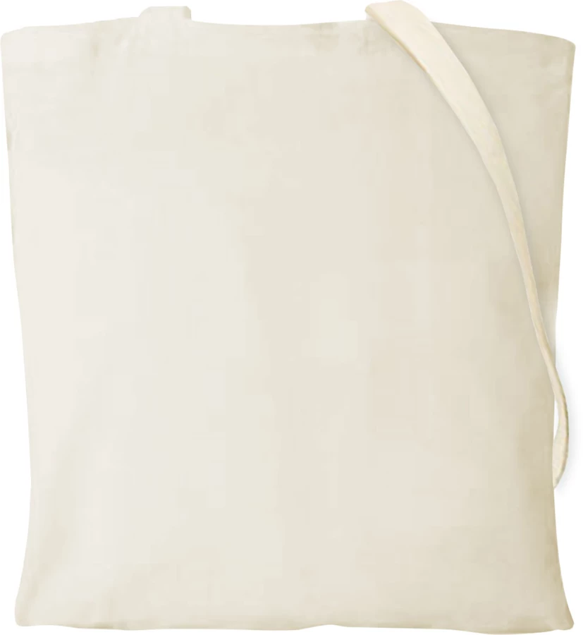 Bawełniana torba z długimi uszami, w naturalnym kolorze. Gramatura 140 g/m², długość ucha to ok. 77 cm). Posiada certyfikat Oeko-Tex STANDARD 100.