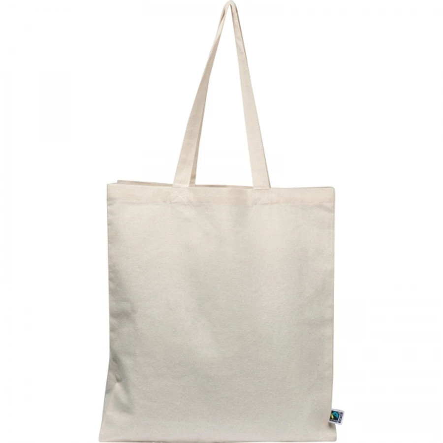 Torba z długimi uszami, wykonana z bawełny organicznej Fair Trade, o gramaturze 180 g/m², z szerokim dnem.