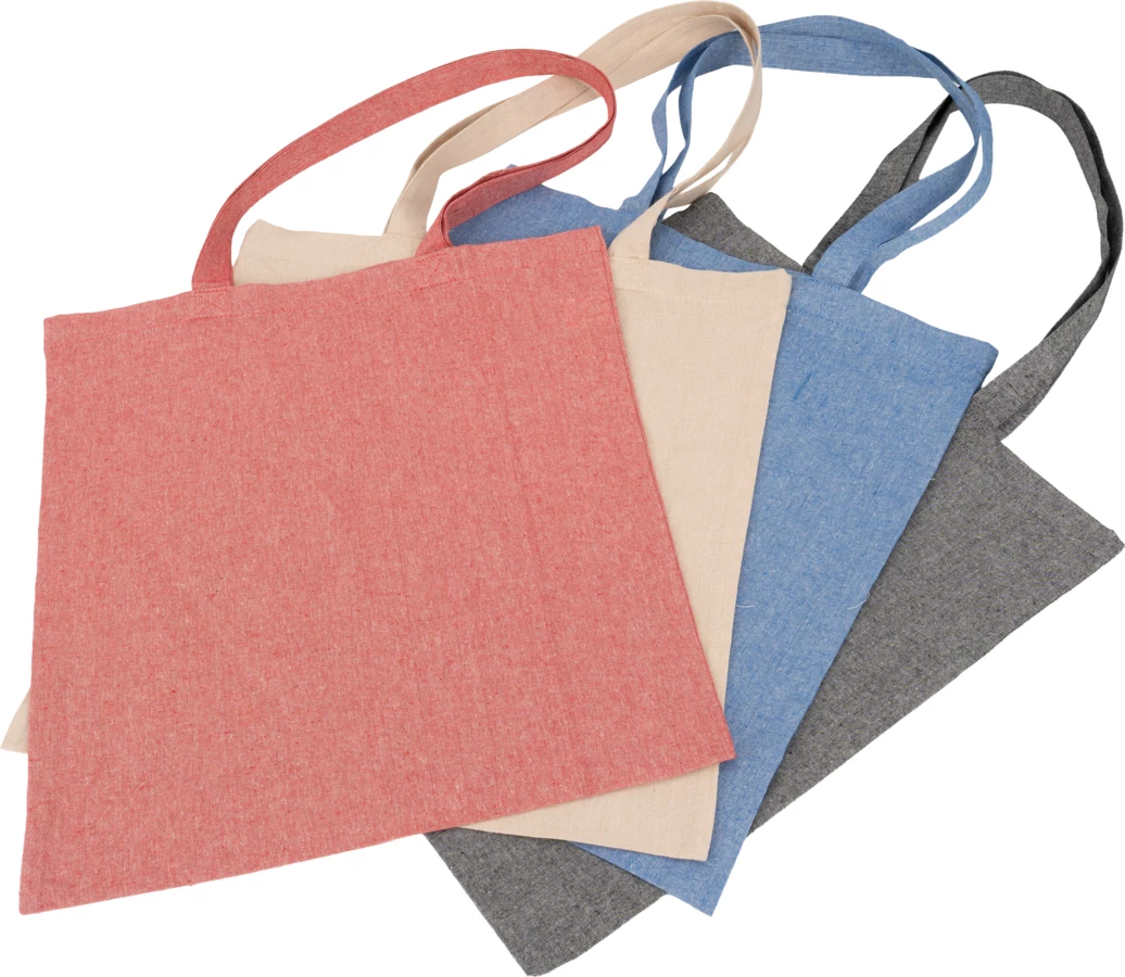 Torba bawełniana pochodząca z recyklingu, z długimi uszami, posiada certyfikat Oeko-Tex STANDARD 100, gramatura 140g/m².