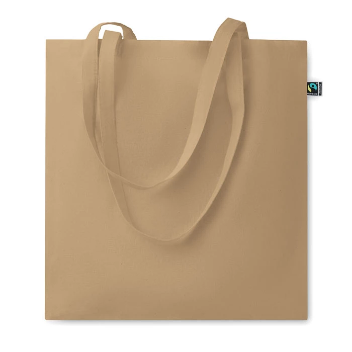 Torba na zakupy wykonana z barwionej bawełny Fairtrade z długimi uchwytami. 140gr/m². Ten produkt posiada certyfikat OEKO-TEX® STANDARD 100.