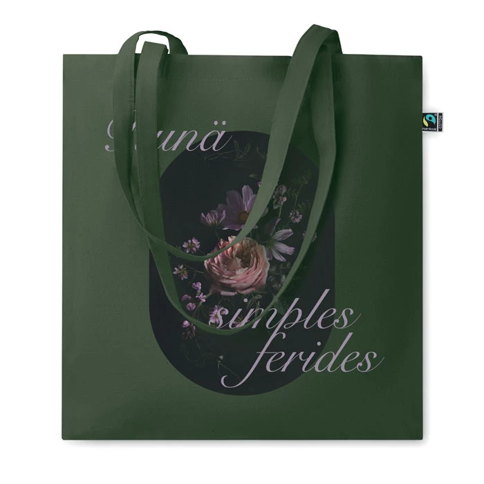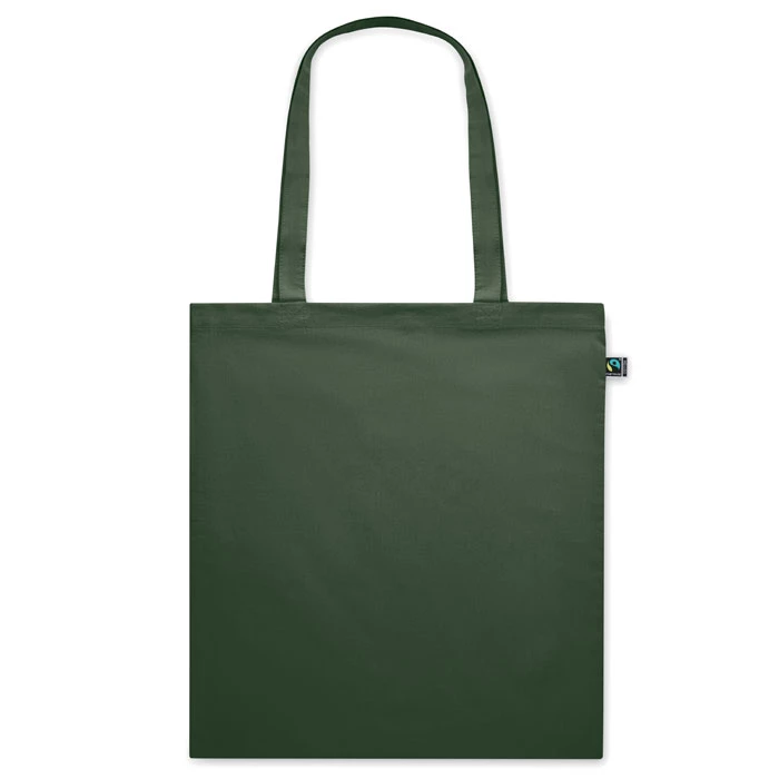 Torba na zakupy wykonana z barwionej bawełny Fairtrade z długimi uchwytami. 140gr/m². Ten produkt posiada certyfikat OEKO-TEX® STANDARD 100.