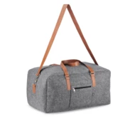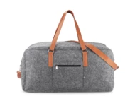 FELT2GO to lekka i pojemna filcowa torba podróżna z elementami z materiału skóropodobnego (PU). Posiada dwa długie eleganckie uchwyty oraz dołączony pasek do przenoszenia. Na zewnątrz jedna kieszonka zapinana na zamek. Wykonana z recyklingowanego filcu rPET.