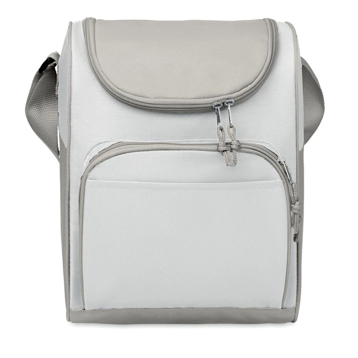 Torba izotermiczna z przednią kieszenią i dwoma suwakami. Materiał izolacyjny: Folia aluminiowa. Pojemność 13L.