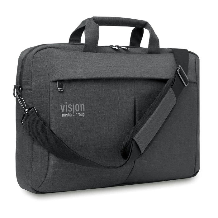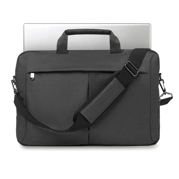 Torba na laptop 360D, wykonana z poliestru, główna przegroda na laptop 15 inch. Z przodu kieszeń zapinana na suwak. Torba posiada odpinany i regulowany pasek na ramię oraz mocowanie na stelaż walizki.