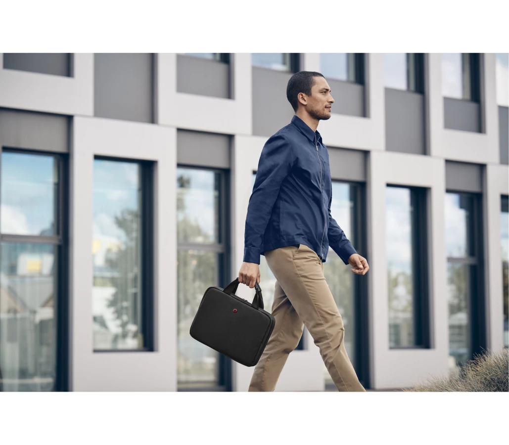 Pokrowiec na laptopa Guyde 14 od marki Wenger, to idealny produkt dla dynamicznych przedsiębiorców. Jest to niezbędny element wyposażenia każdego aktywnego biznesmena, gwarantuje funkcjonalność i ochronę. Wykonany z materiału pochodzącego z recyklingu butelek PET, zapewnia bezpieczne przechowywanie laptopów o przekątnej do 14 cali. Jego wewnętrzna kieszeń umożliwia łatwy dostęp do akcesoriów i zapewnia ich porządek. Dodatkowo, jest bardzo wygodny bo posiada podwójne uchwyty do noszenia.