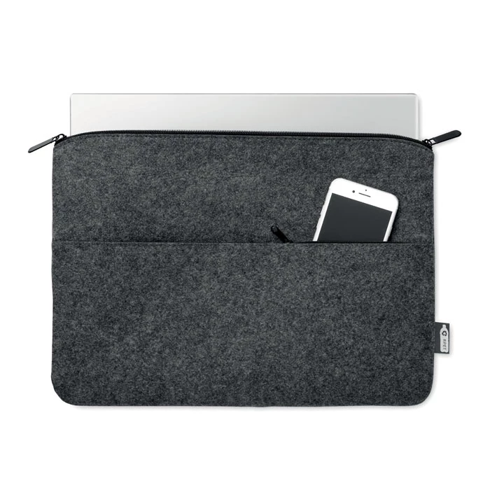 14-calowa torba na laptopa z 15W filcu RPET, zapinana na zamek błyskawiczny z przednią kieszenią zapinaną na zamek błyskawiczny.