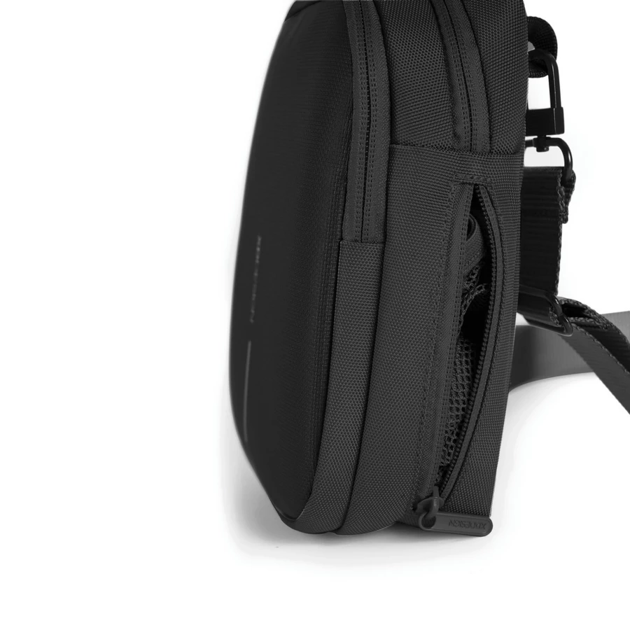 Torba na ramię, saszetka, ukryta kieszeń z tyłu, ukryta kieszeń na butelkę, wykonana z materiałów z recyklingu, dzięki zastosowaniu technologii fizycznych znaczników AWARE™ wykorzystane materiały są identyfikowalne z pochodzenia, ślad węglowy produktu: 2,94 kg CO2