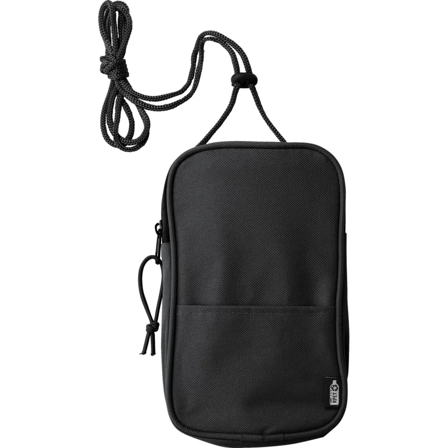 Torba na ramię, saszetka RPET, zamykana na zamek błyskawiczny, otwarta kieszeń przednia, regulowany sznurek
