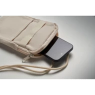 Torba na smartfon z recyklingowanej bawełny z regulowaną smyczą z poliestru RPET i otwartą kieszenią z przodu. 280 gr/m².