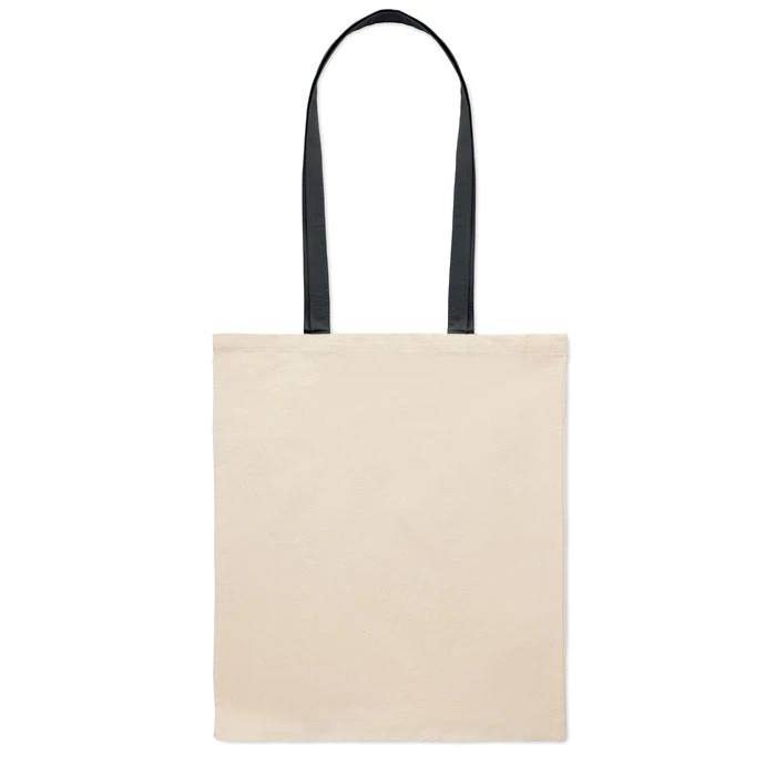 Torba na zakupy z długimi kolorowymi uchwytami z bawełny. 140 gr/m². Ta torba jest idealna na codzienne zakupy. Dostępna z różnokolorowymi uchwytami. Torbę można przewiesić przez ramię, gdy jest ciężka, aby mieć wolne ręce. Maks. obciążenie: 2,5 kg. Ten produkt posiada certyfikat OEKO-TEX® STANDARD 100.