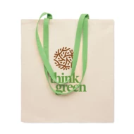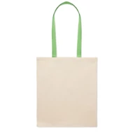 Torba na zakupy z długimi kolorowymi uchwytami z bawełny. 140 gr/m². Ta torba jest idealna na codzienne zakupy. Dostępna z różnokolorowymi uchwytami. Torbę można przewiesić przez ramię, gdy jest ciężka, aby mieć wolne ręce. Maks. obciążenie: 2,5 kg. Ten produkt posiada certyfikat OEKO-TEX® STANDARD 100.