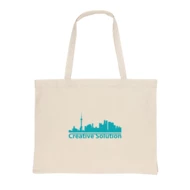 Torba na zakupy, posiada wstawkę na spodzie o szerokości 14 cm, która zapewnia dodatkowe miejsce, wykonana z mieszanki 70% bawełny i 30% RPET pochodzących z recyklingu, dzięki zastosowaniu technologii AWARE™ wykorzystane materiały są identyfikowalne z pochodzenia, 2% wpływów z każdego sprzedanego produktu z kolekcji Impact jest przekazywane na rzecz Water.org