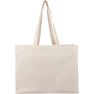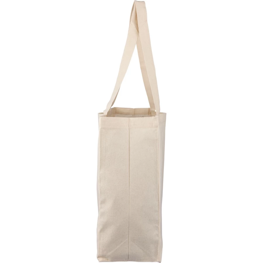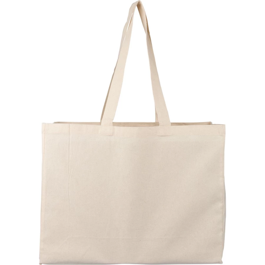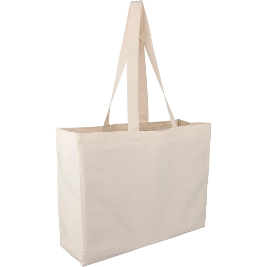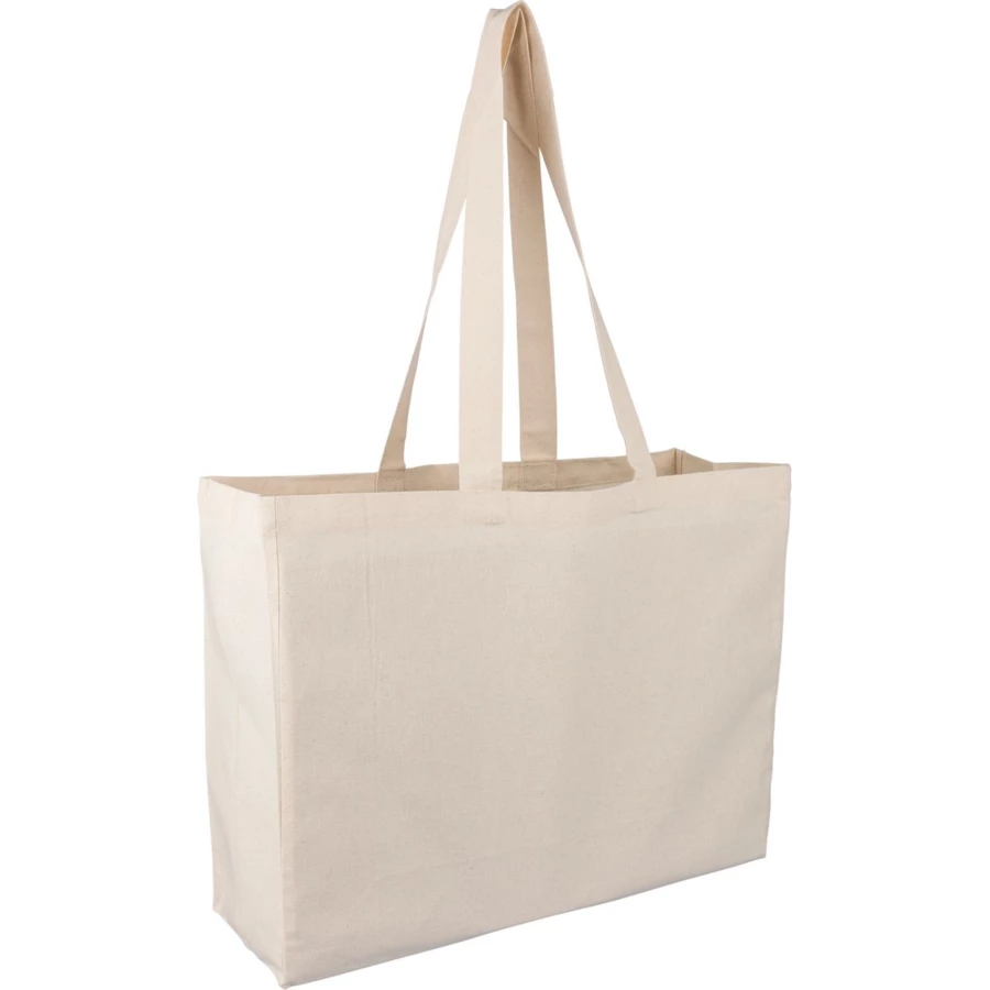 Torba na zakupy 180 g/m² o pojemności 21 litrów, posiada długie uchwyty umożliwiające noszenie na ramieniu (3 x 67 cm), ikona OEKO-TEX na metce, produkt wykonany z bawełny naturalnej