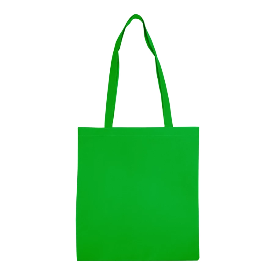 Torba na zakupy, posiada długie uchwyty (długość 70 cm, szerokość 2,5 cm) umożliwiające noszenie na ramieniu, możliwość nadrukowania dużego i widocznego z daleka logotypu, z materiału non-woven o gramaturze 80 g/m2