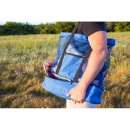 Torba plażowa, na zakupy, wykonana z poliestru RPET, zgodna z certyfikatem GRS (Global RecycIed Standard), z dolną przegrodą termoizolacyjną na zamek błyskawiczny, przednia kieszeń i siateczkowa przegroda główna na zamek błyskawiczny