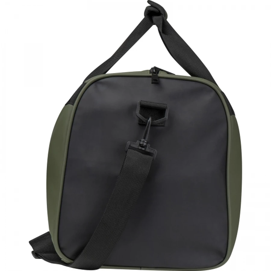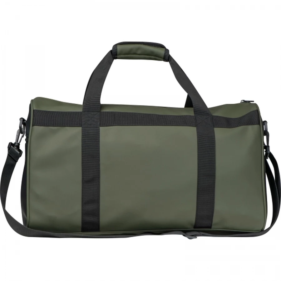Duża torba podróżna wykonana z wodoodpornego PU z dwoma dużymi kieszeniami. Materiały: PU 210T (matowa powłoka), nylon, pianka EVA (spód torby, uchwyt do rączek).
