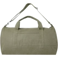 Torba podróżna Porter wykonana z bawełny pochodzącej z recyklingu o gramaturze 500 g/m² i poliestru pochodzącego z recyklingu, wyposażona jest w pojemną komorę główną umożliwiającą optymalne przechowywanie większych przedmiotów oraz małą przednią kieszeń do przechowywania małych przedmiotów, takich jak paszport lub telefon. Torbę można przenosić przy pomocy dwóch krótkich uchwytów lub odpinanego paska, który można regulować w celu zapewnienia maksymalnego komfortu. Torba podróżna z włókna Cyclo® pochodzącego z recyklingu, do pozyskania którego wykorzystano wstępnie posortowane odpady, wpływające na kolor przędzy. Włókna te nie tylko zmniejszają zapotrzebowanie na surowce pierwotne, ale także są przejawem zaangażowania w tworzenie obiegu zamkniętego, stanowiąc realny przykład zmniejszania ilości odpadów i promując gospodarkę w obiegu zamkniętym. Do każdej torby dołączony jest również znacznik Aware™. Ta innowacyjna funkcja pozwala użytkownikom prześledzić za pomocą kodu QR pochodzenie produktu i pokonaną przez niego drogę, zwiększając przejrzystość łańcucha dostaw i wspierając silniejszy związek między produktem a jego procesem produkcyjnym. Pojemność: 50 litrów.