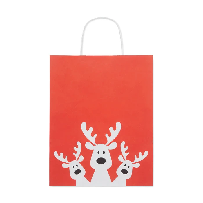 Świąteczna średnia torba papierowa na prezenty (50% papieru z recyklingu). 90 gr/m². Wyprodukowano w UE.