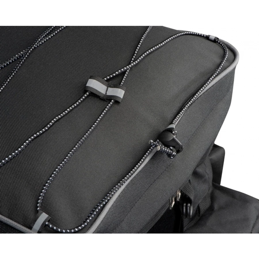 Wysokiej jakości torba na rower, do mocowania na bagażniku, posiada wiele praktycznych przegródek.