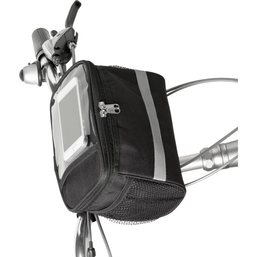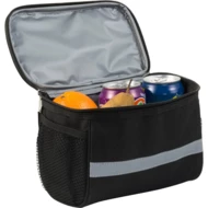 Rowerowa torba termoizolacyjna na zamek, na górze kieszeń PVC, połyskliwy pasek, siateczkowe kieszenie po bokach
