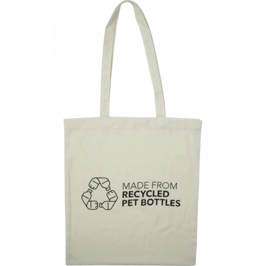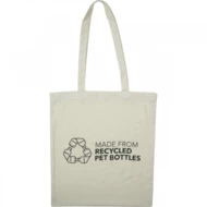Torba wykonana z RPET pochodzącego z recyklingu, z nadrukiem MADE FROM RECYCLED BOTTLES.