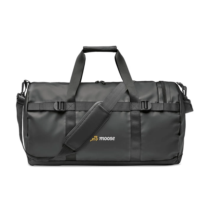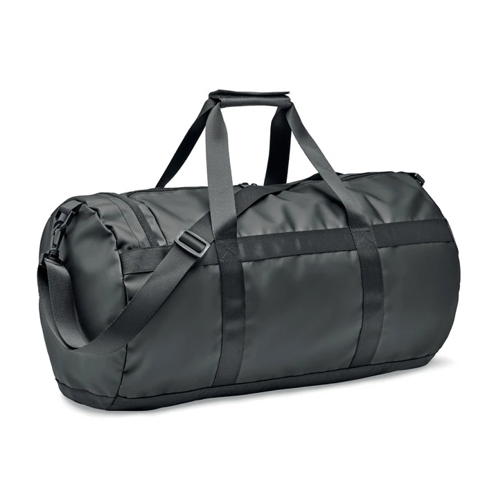 Torba sportowa lub podróżna z tkaniny tarpaulin 50C z boczną przegrodą zapinaną na zamek i wewnętrzną kieszenią zapinaną na zamek. Posiada wygodny uchwyt i wyściełaną spód.