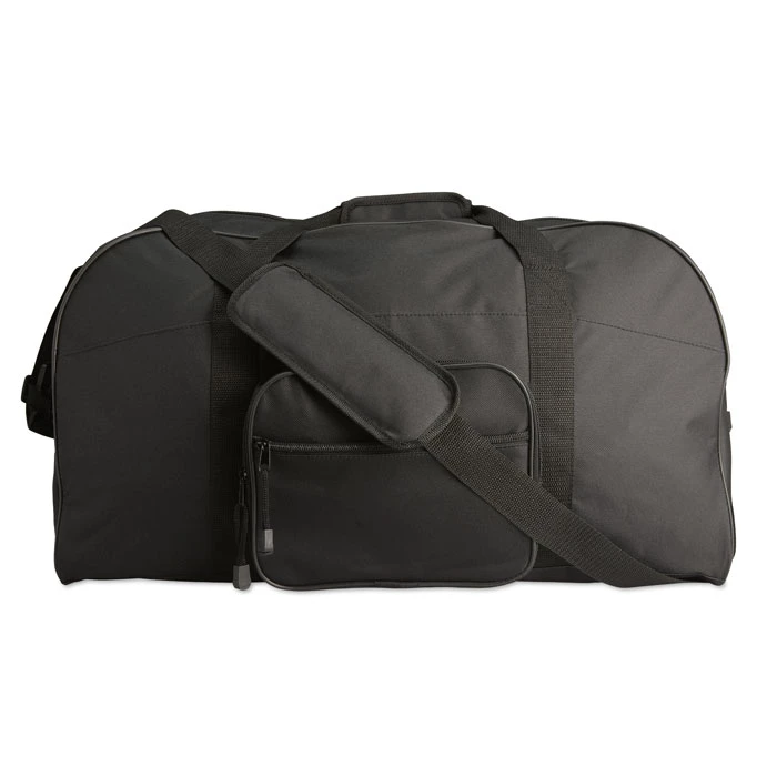 Torba sportowa lub podróżna z kieszenią z przodu i regulowanym odpinanym paskiem na ramię. Wykonana z poliestru 600D.