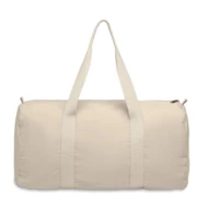 Torba sportowa i podróżna z zapinaną na zamek przegrodą boczną i zapinaną na zamek kieszenią wewnętrzną z bawełny z recyklingu 320 gr/m² (80%) i poliestru z recyklingu (20%) z długimi uchwytami.