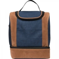 Torba termiczna z poliestru 600D z elementami z materiału imitującego zamsz, z uchwytem oraz przegrodami zamykanymi na zamek.