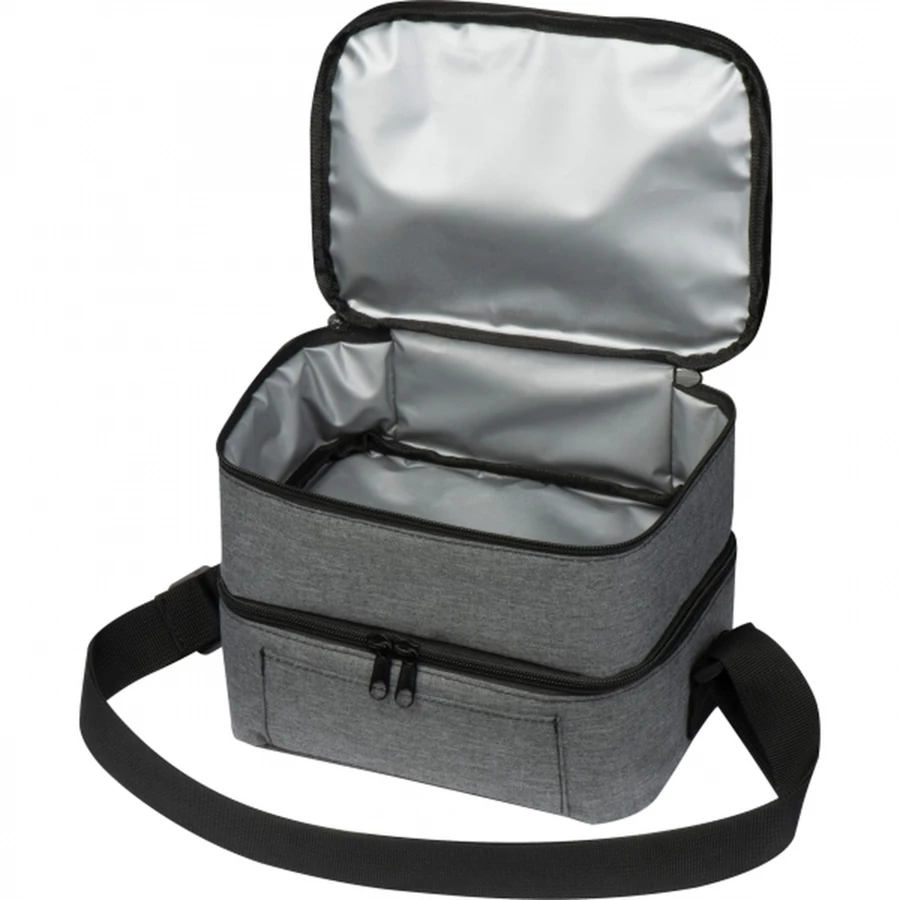 Torba chłodząca, dwupoziomowa. W dolnej komorze znajduje się idealnie dopasowane, szklane pudełko na lunch.