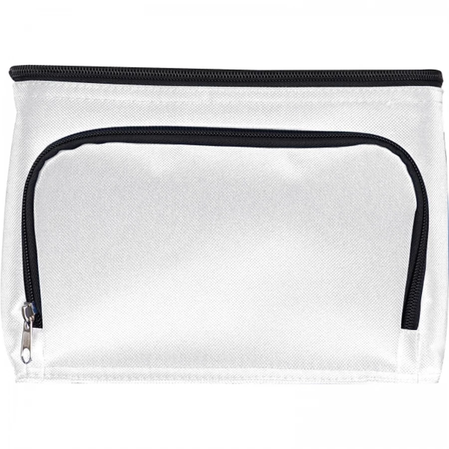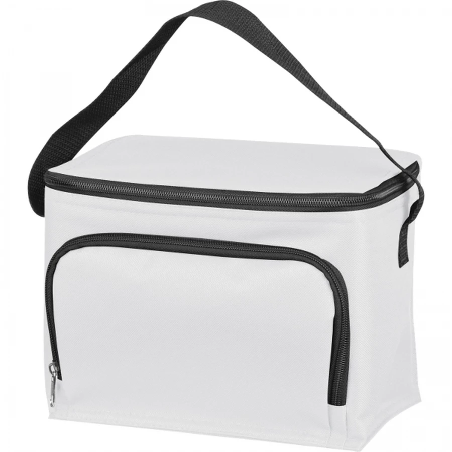Torba termoizolacyjna z poliestru 210D z nylonowym paskiem i przednią kieszenią na zamek. Pomieści sześć puszek o poj. 500 ml.