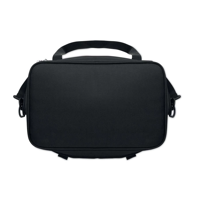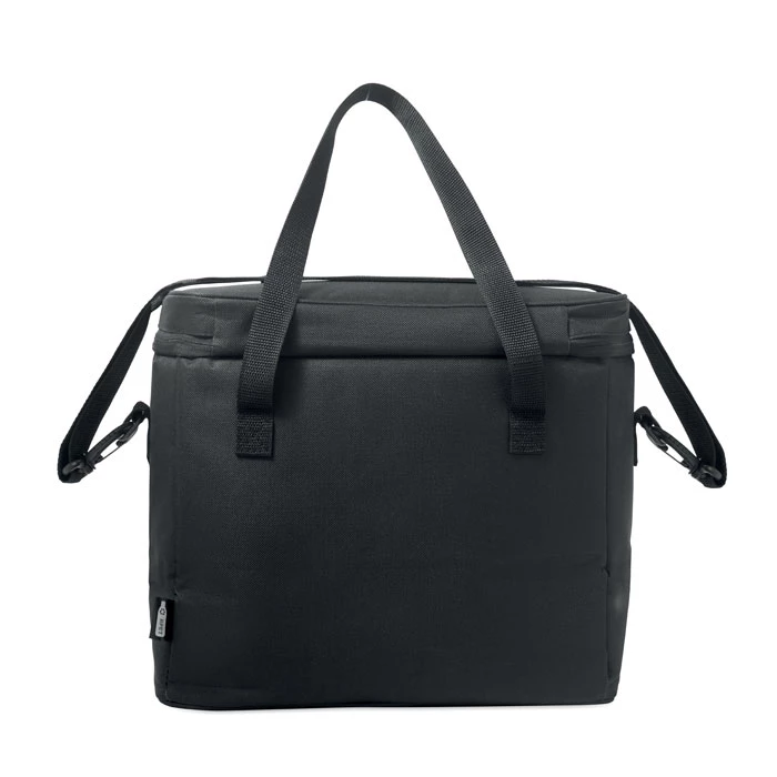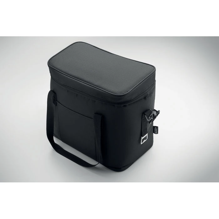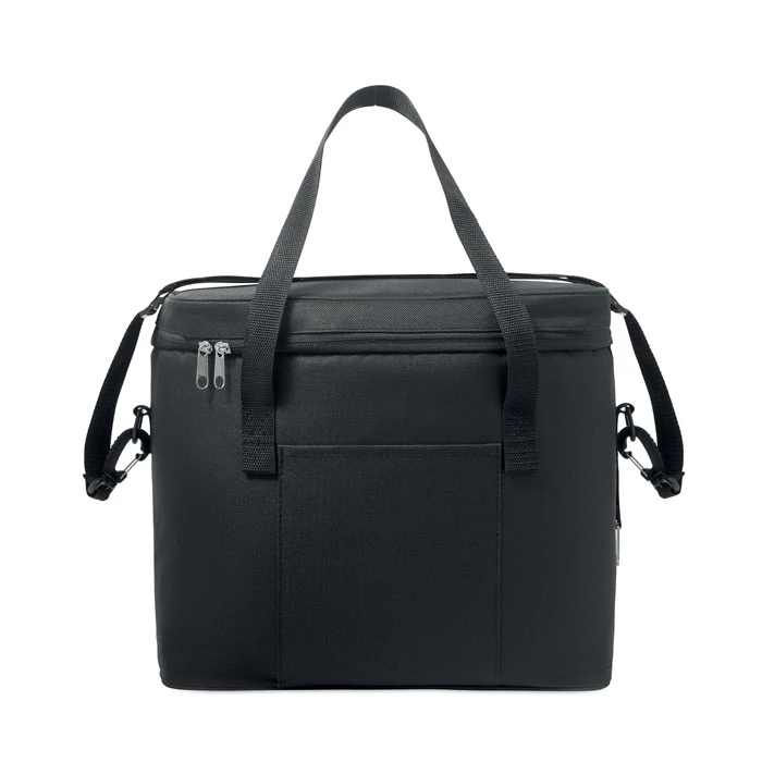 Torba termiczna z poliestru 600D RPET z powłoką PU. Ma 1 przednią kieszeń i 1 wewnętrzną kieszeń z siatki. Izolująca podszewka PEVA z pianką PE 6 mm. 2 uchwyty i 1 regulowany pasek. Pojemność 18L.