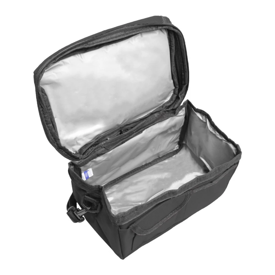 Torba termoizolacyjna, 1 główna przegroda na zamek błyskawiczny, 1 przednia kieszeń, 1 przegroda na zamek w górnej części, regulowany pasek na ramię