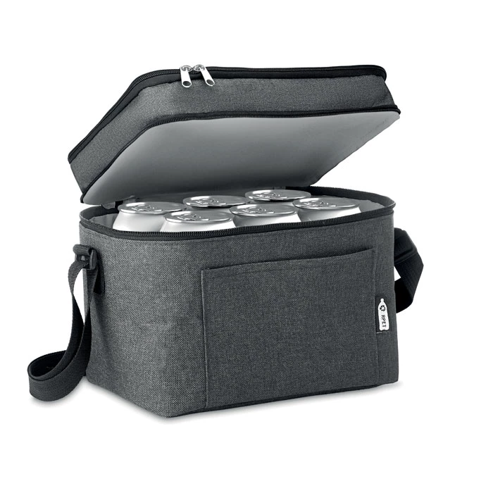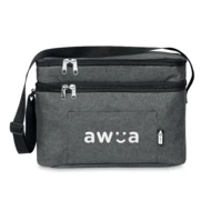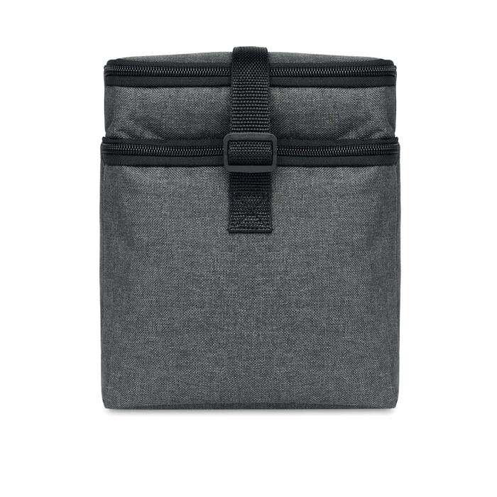 Torba termoizolacyjna w 2 odcieniach 600D RPET z 2 przegrodami. Regulowany pasek na ramię, przednia kieszeń. Materiał izolacyjny: PEVA 0,15 mm + pianka 3 mm.