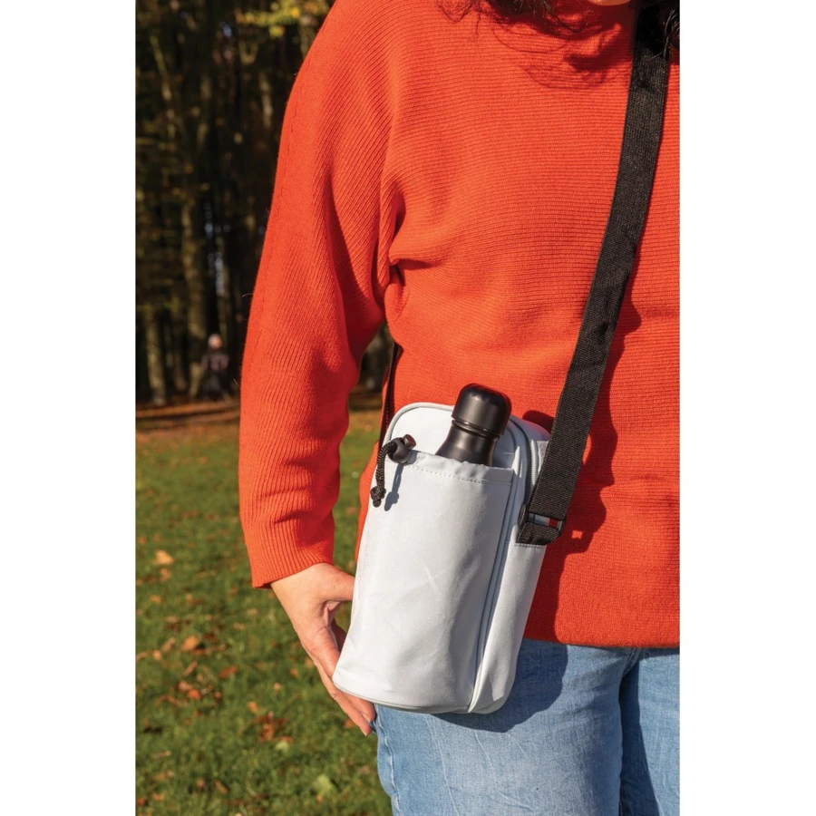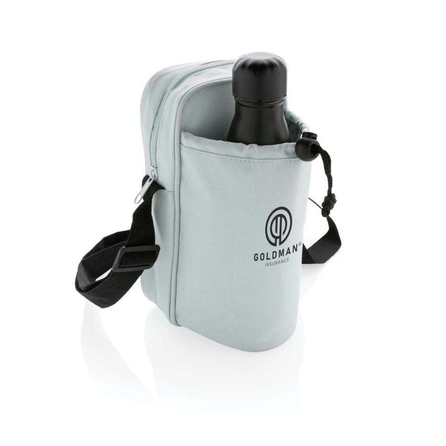 Termoizolacyjna torba na ramię, przegroda główna zamykana na zamek błyskawiczny, wewnątrz specjalna kieszeń na butelkę (max rozmiar 25x7,5 cm), regulowany pasek na ramię, wnętrze z poliestru 210D i PEVA, na zewnątrz poliester 600D, nie zawiera PVC, ślad węglowy produktu: 1,29 kg CO2