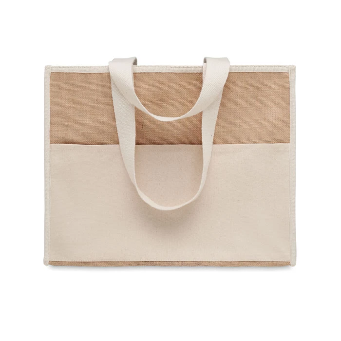 Jutowa torba na zakupy z długimi uchwytami, zapięciem na rzep oraz wnętrzem z folii termoizolacyjnej zapewniające świeżość zakupów. Z przodu znajduje się płócienna kieszeń na mniejsze przedmioty. Torba jest idealna na codzienne zakupy spożywcze. Długa żywotność torby sprawia, że jest to doskonała alternatywa dla jednorazowych, plastikowych reklamówek. Ten produkt posiada certyfikat OEKO-TEX® STANDARD 100.