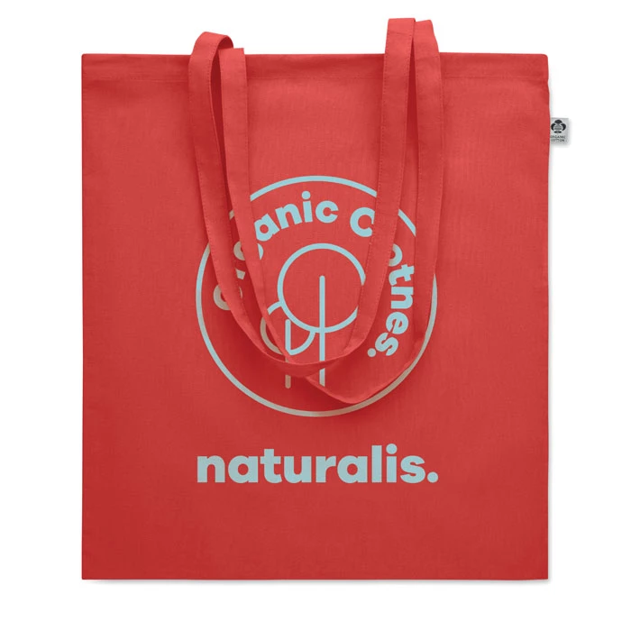 Torba na zakupy z bawełny organicznej z długimi uchwytami. 180 gr/m². Wyprodukowana zgodnie z certyfikowanym standardem dotyczącym stosowania szkodliwych substancji w tekstyliach. Ten produkt posiada certyfikat OEKO-TEX® STANDARD 100.