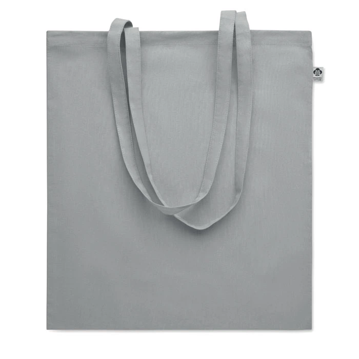 Torba na zakupy z bawełny organicznej z długimi uchwytami. 180 gr/m². Wyprodukowana zgodnie z certyfikowanym standardem dotyczącym stosowania szkodliwych substancji w tekstyliach. Ten produkt posiada certyfikat OEKO-TEX® STANDARD 100.