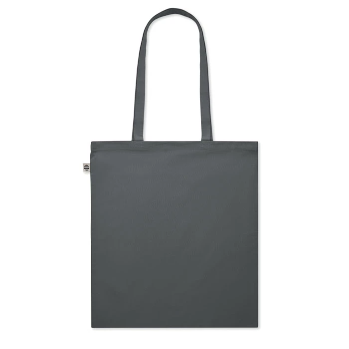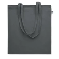 Torba na zakupy z bawełny organicznej z długimi uchwytami. 180 gr/m². Wyprodukowana zgodnie z certyfikowanym standardem dotyczącym stosowania szkodliwych substancji w tekstyliach. Ten produkt posiada certyfikat OEKO-TEX® STANDARD 100.