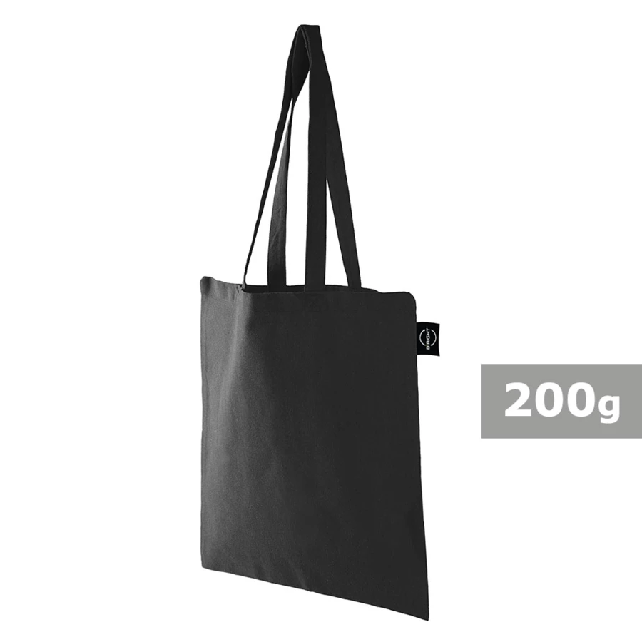 Torba na zakupy B'RIGHT, posiada długie uchwyty umożliwiające noszenie na ramieniu, produkt wykonany z bawełny z recyklingu o gramaturze 200 g/m² i poliestru z recyklingu, zgodna z certyfikatem GRS (Global RecycIed Standard)