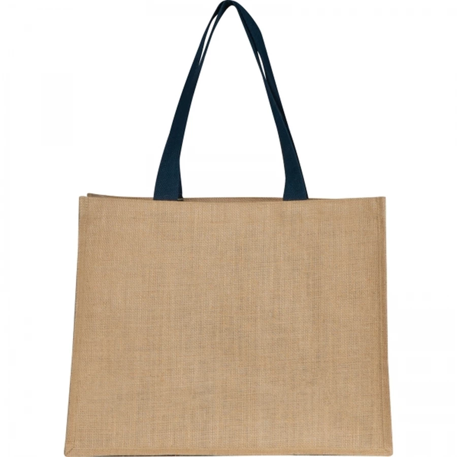 Torba z certyfikatem Oeko-Tex STANDARD 100, wykonana z juty, z mocnymi bawełnianymi uchwytami. Juta organiczna laminowana, wytrzymała i odporna na rozciąganie.