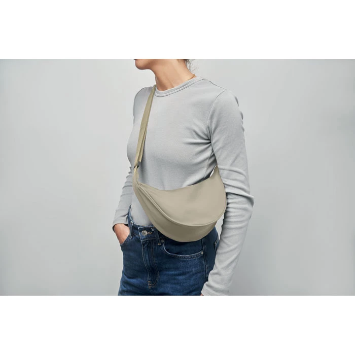 Torba typu sling lub cross body z materiału 400D oxford i podszewką 210D RPET. Jedna główna kieszeń zapinana na zamek i 2 kieszenie wewnętrzne.