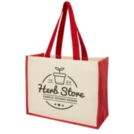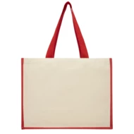 Modna torba na zakupy z panelami bocznymi z łatwego do nadrukowania płótna 320 g/m² i wyjątkowych ramek z laminowanej juty, z uchwytami z bawełny.